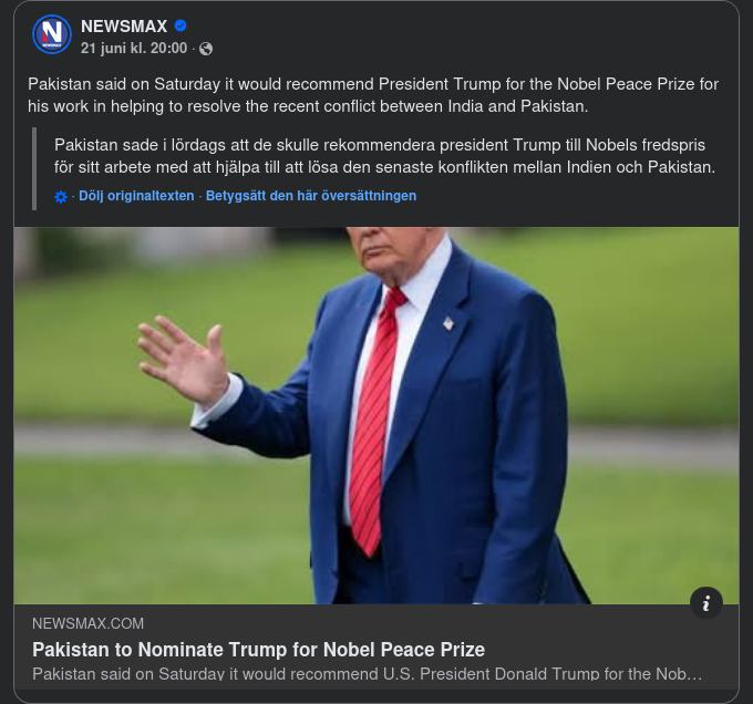 https://www.newsmax.com/newsfront/pakistan-trump-nobel/2025/06/21/id/1215875/Pakistan Nominerar Trump För Nobels Fredspris