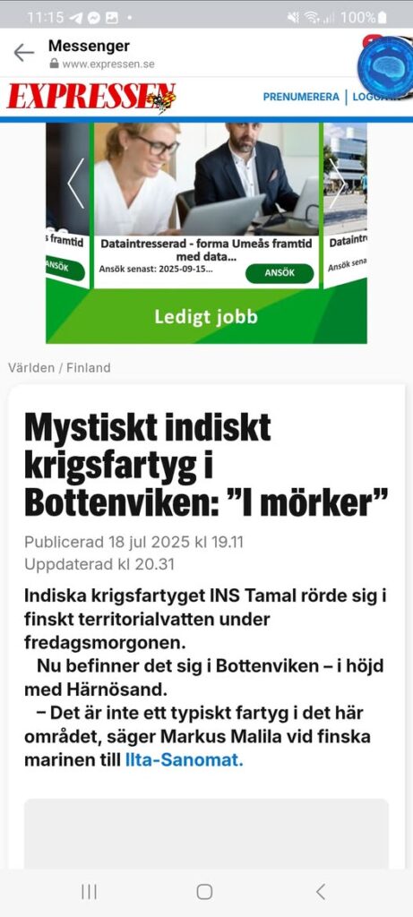 – Det är inget ovanligt med situationen hittills. Fartyget seglar i enlighet med internationell sjörätt.Mystiskt Indiskt Krigsfartyg I Bottenviken