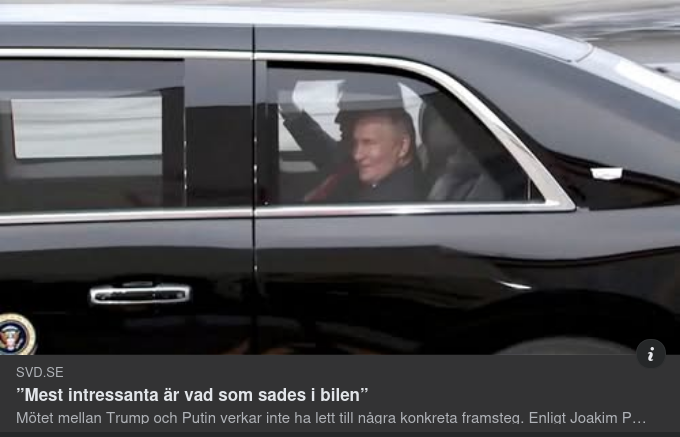 – Att de faktiskt spelar under täcket. Det finns en risk för det, men hur stor den är är omöjligt att säga. Det var i vilket fall oerhört märkligt att släppa in en utländsk statschef som amerikanska säkerhetsmyndigheter pekat ut som ett akut hot så sent som i mars får färdas i samma bil som presidenten."