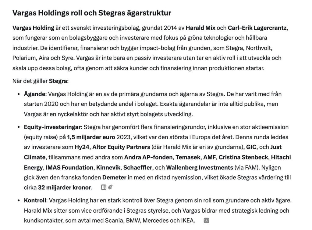 Ägarstruktur För Vargas Holding & Stegra
