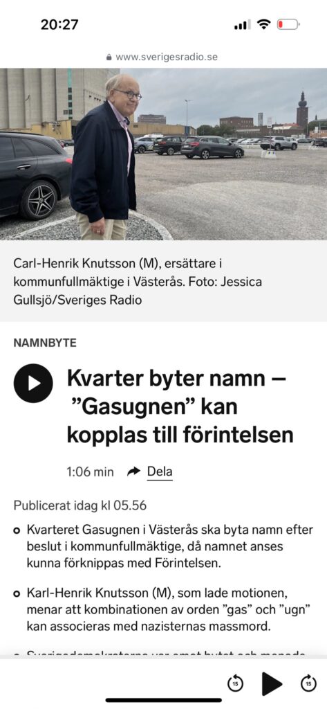 Förintelsen Får Kvarter Gasugnen I Västerås Att Byta Namn