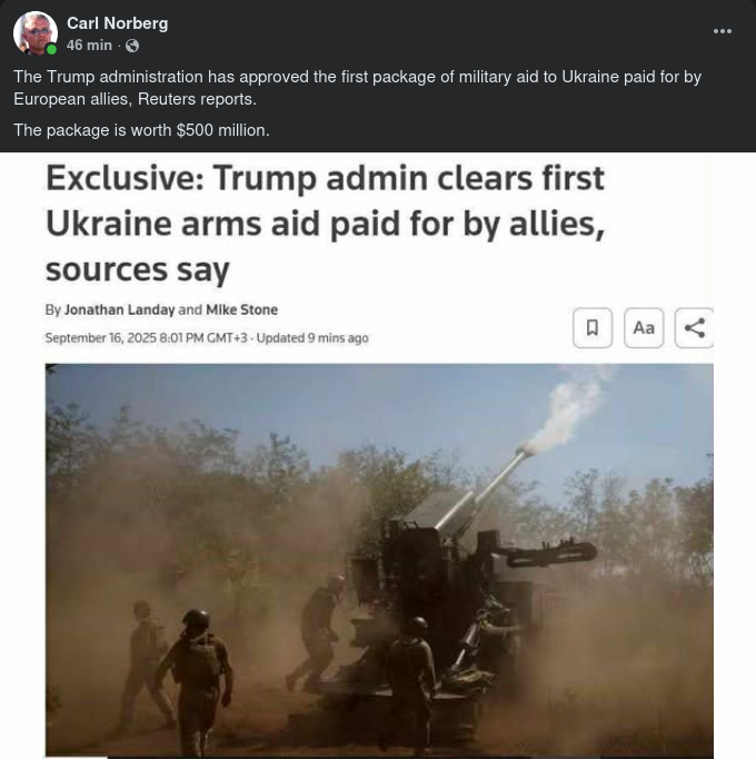 Amerikanskt Vapenpaket Betalt Av Europa Till Ukraina