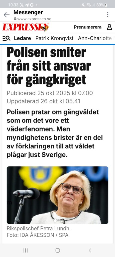 https://www.expressen.se/ledare/patrik-kronqvist/polisen-smiter-fran-sitt-ansvar-for-gangkriget/Gängkriminalitetsansvarssmitande Polis