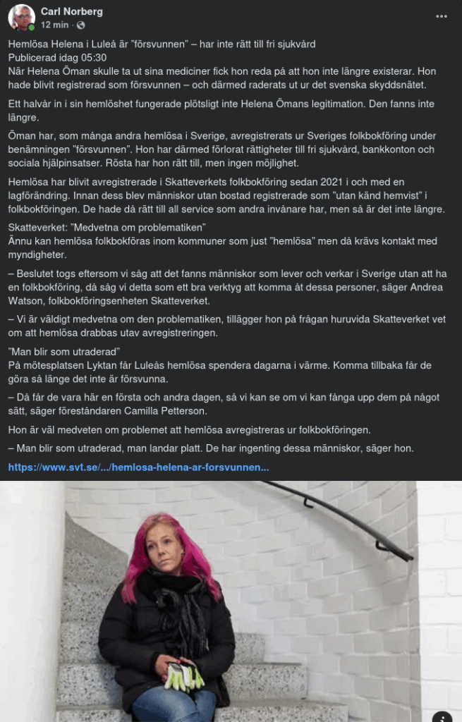 https://www.svt.se/nyheter/lokalt/norrbotten/hemlosa-helena-ar-forsvunnen-varken-ratt-till-sjukvard-eller-idFörsvunnen Ur Det Svenska Skyddsnätet