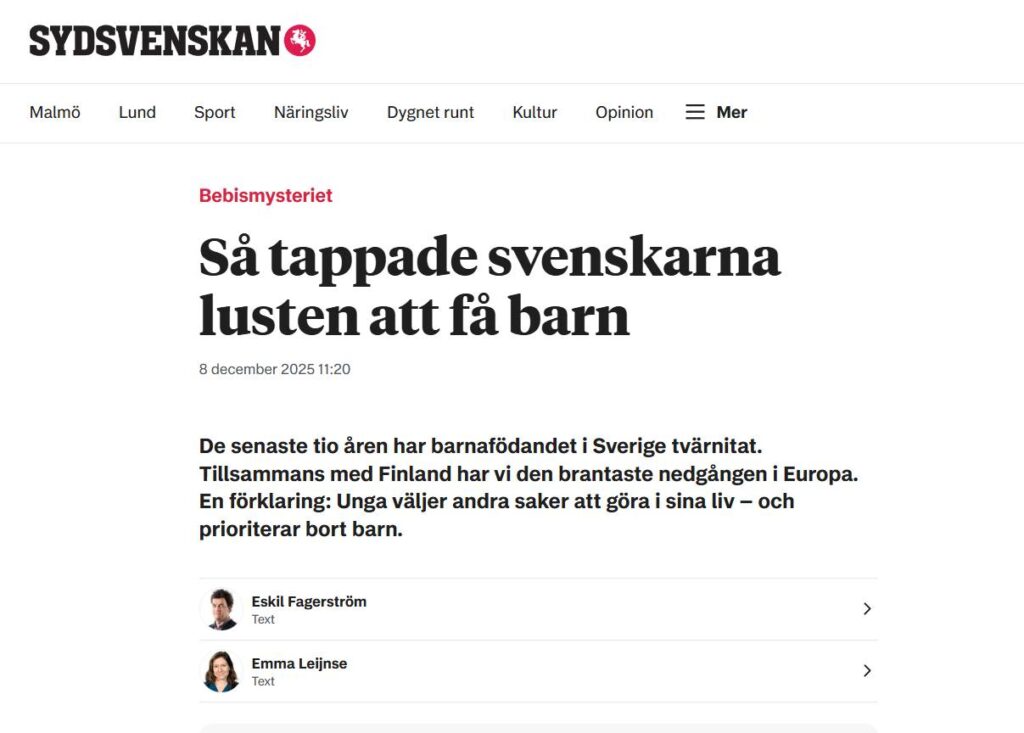 Det skedde i Japan, det skedde i Kina, det skedde i Italien, Spanien och Grekland. I de nordiska länderna fanns däremot uppfattningen att vi hade vaccinerat oss mot en av världens stora megatrender: det minskade barnafödandet.