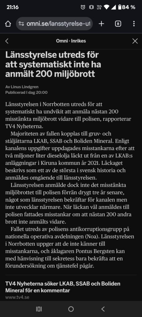Majoriteten av fallen kopplas till gruv- och ståljättarna LKAB, SSAB och Boliden Mineral. Enligt kanalens uppgifter uppdagades misstankarna efter att två miljoner liter dieselolja läckt ut från en av LKAB:s anläggningar i Kiruna kommun år 2021. Läckaget beskrivs som ett av de största i svensk historia och anmäldes omgående till länsstyrelsen.