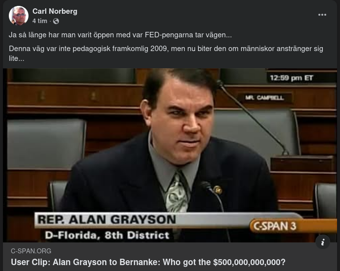 https://www.c-span.org/clip/house-committee/user-clip-alan-grayson-to-bernanke-who-got-the-500000000000/4527335Frihetens hemlighet ligger i att utbilda människor, medan tyrannins hemlighet är att hålla dem i okunskap.
