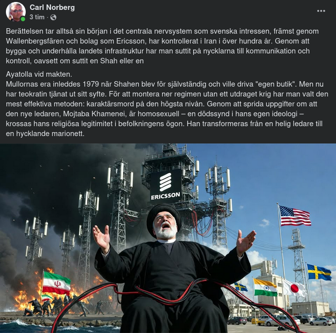 Idag sluts cirkeln. I Iran är Ericsson den enda stora västerländska aktören som finns kvar sedan Hjalmarsons tid. Samtidigt har Ericsson i USA blivit den "säkra" leverantören som ersatt Huawei i de mest kritiska näten. Detta innebär att de krafter som kontrollerar Ericssons teknologi – och därmed källkoden till de globala flödena – besitter en strategisk insyn som sträcker sig från 1910-talets telegrafstationer vid Hormuz till dagens 5G-nät.