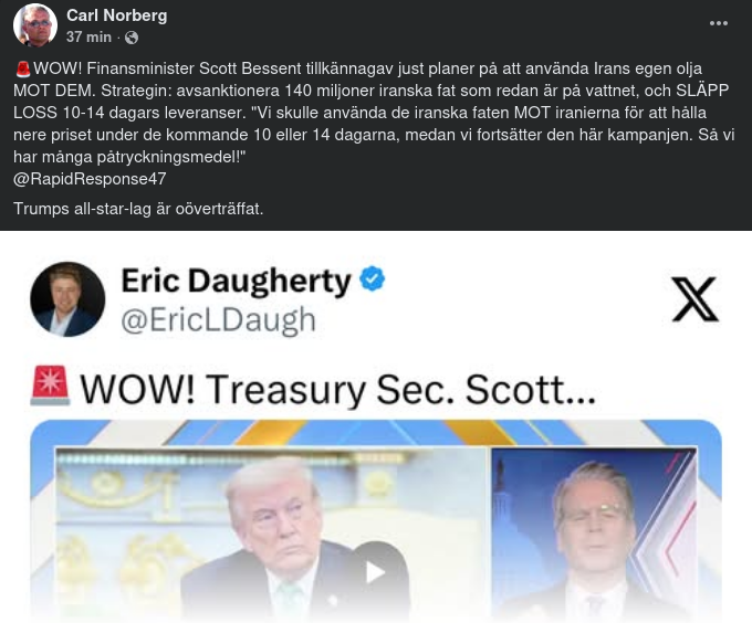 https://x.com/EricLDaugh/status/2034617461887119544Frihetens hemlighet ligger i att utbilda människor, medan tyrannins hemlighet är att hålla dem i okunskap.